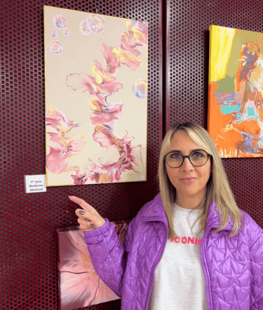 Échanger autour de mes créations, donner, recevoir est un exercice enthousiasmant et la bienveillance des personnes qui viennent voir mes toiles est toujours un moteur pour repartir vers la création.